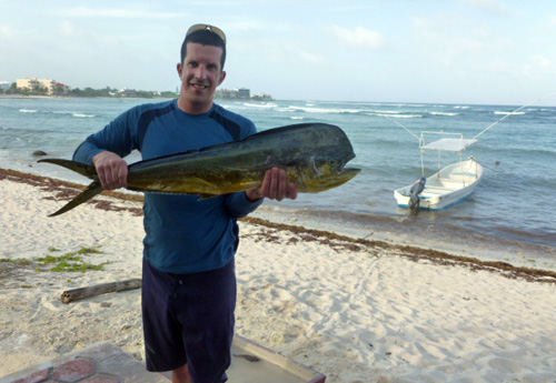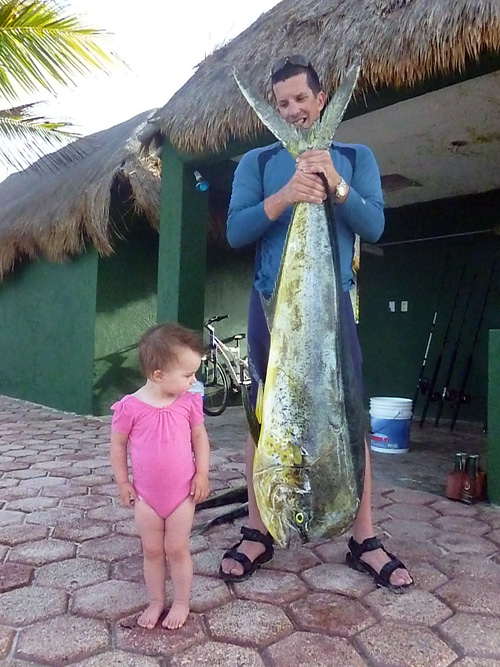 It's clear to me now that by the time we got to Akumal, I was in full vacation mode. I love traveling for the inspiration it provides at every corner, and man did I need to get away. As we made it an hour south of Puerto Morelos, D and M took naps int he cab and we had officially sunk in to ourselves. I made time for some runs in the morning to acquaint myself with the town. There were so many great things going on but a massage for both of us was the highest priority. D took care of his fishing trip. Other than that we delighted in the food, including one awesome moonlight and flashlight-lite dinner that was probably the best meal (and I have no pictures of it). We were the only people in the sand-floored restaurant and when we returned to our condo, we found a large sea turtle just below our patio on the beach looking for a place to lay her eggs. There was a certain element of magic to the whole thing.