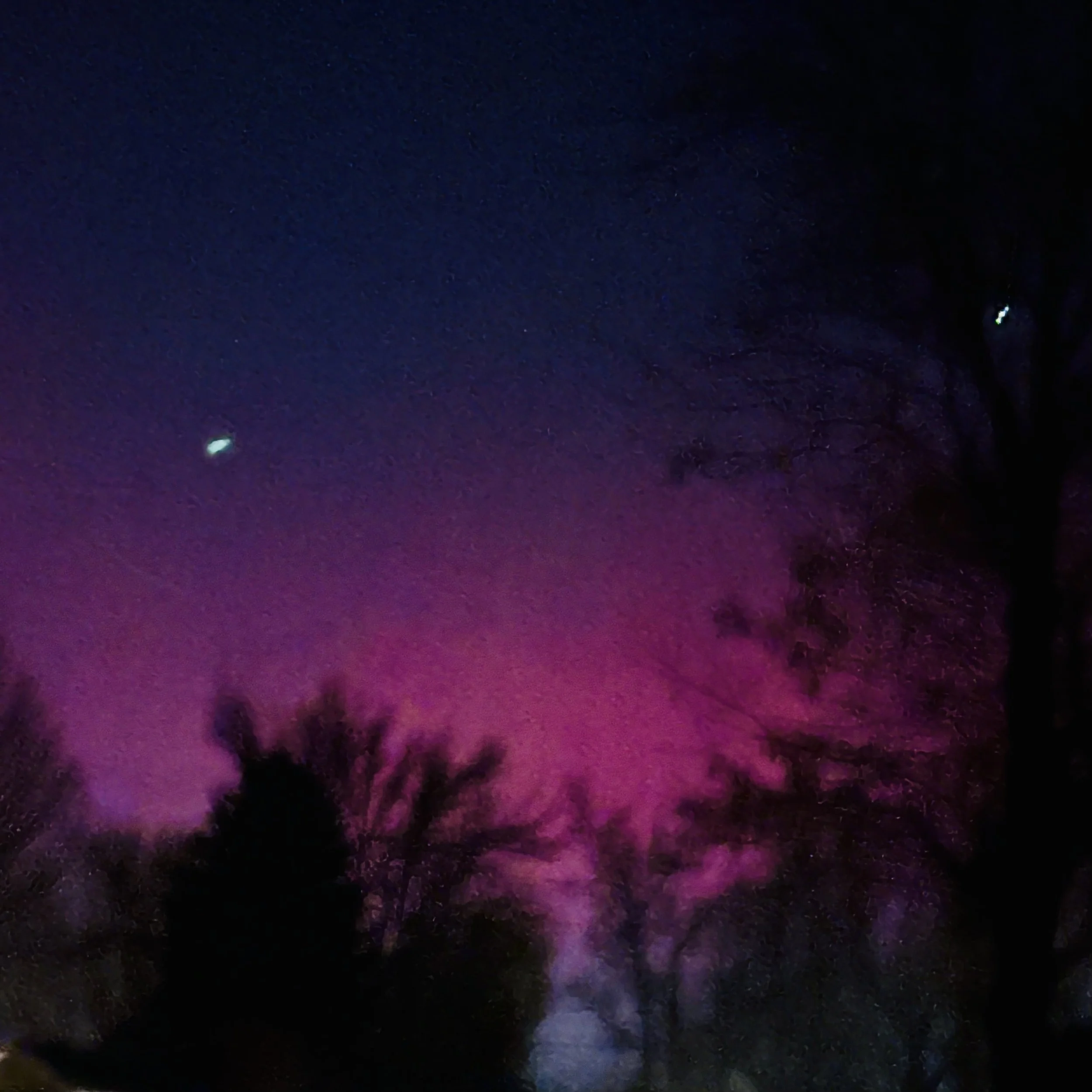 You’ve been on my mind all day today and I’ve been looking for signs. My social algorithm is feeding me a lot lately. Out in the real world, I caught many repeating numbers and a call from my husby at 11:11. I believe in all these things and recently I remembered about angels too; that has a lot to do with you. Still the best cosmic treat was seeing the Northern Lights for the first time tonight. I didn’t know that’s what I was looking at, I just knew the sky never looked that pink and beautiful after dark. Later I was flooded with the knowledge online by a community of night gazers.